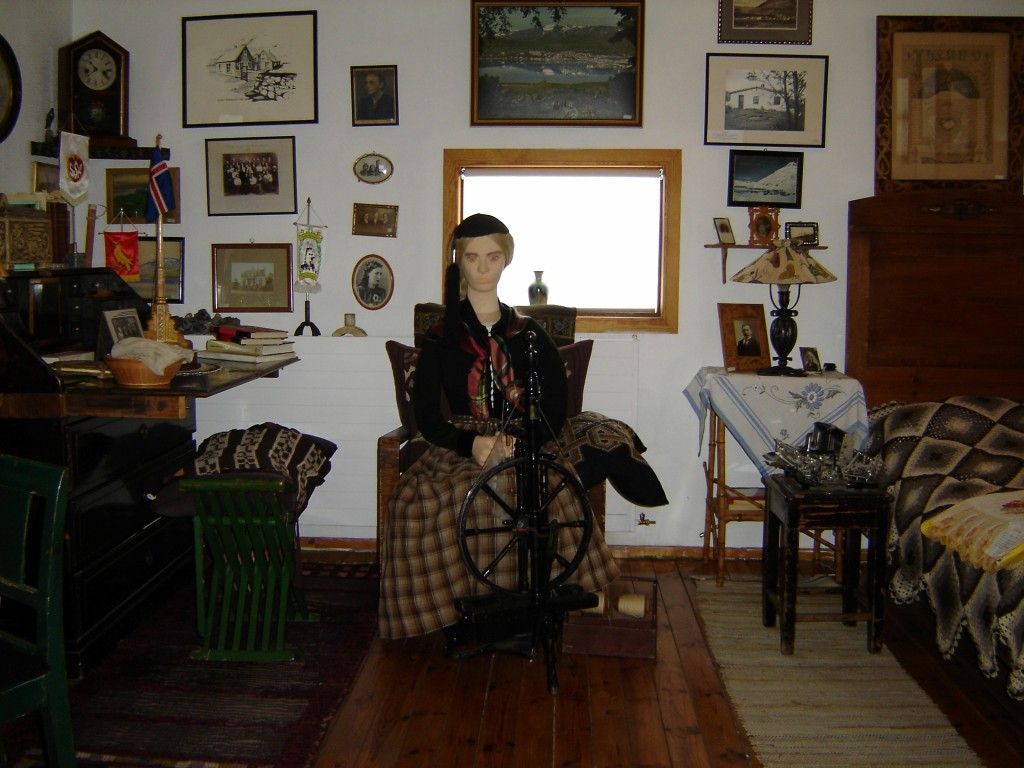 - “Halldórustofa” ist ein Teil des Museums und ist nach Halldóra Bjarnadóttir (1873-1981) benannt, eine in Island sehr bekannte Frau. Sie war lange Haushaltsberaterin des Bauernverbandes in Island, 44 Jahre lang Herausgeberin der Zeitschrift „Hlín” und gründete und betrieb die Woll- und Handarbeitsschule in Svalbarði in Süd-Þingeyjarsýsla. Halldóra war eine treibende Kraft für die Verbesserung der Ausbildung und sozialen Lage der Frauen und stellte ihr Wirken vor. Sie sammelte viele handwerkliche Dinge sowie verschiedene Web- und Strickmuster auf ihren Reisen durch das Land. Halldóra hinterließ dem Handarbeitsmuseum ihre letzte Hinterlassenschaft, die nun in „Halldórustofa” zu sehen ist.